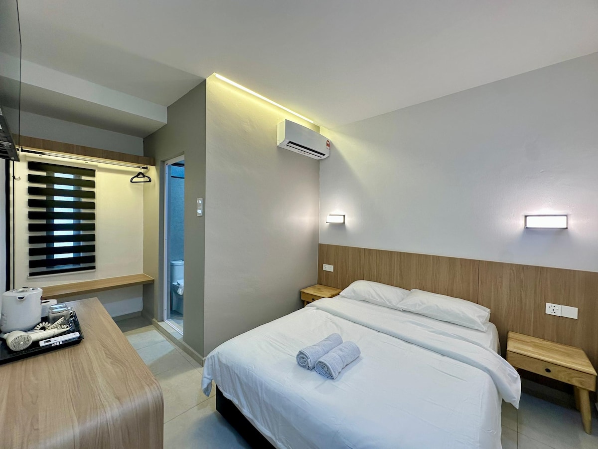 A modern and secure guesthouse in Taman Abad, Johor Bahru, designed for comfort and convenience. The house has 6 private rooms, each with a queen bed and private bathroom. Both the main entrance and individual rooms are secured with digital locks and unique passcodes for a hassle-free self check-in experience. Guests can use the shared kitchen, equipped with a microwave and cutlery, ideal for preparing light meals. Just a 2-minute walk to KSL City Mall, everything you need is within easy reach.