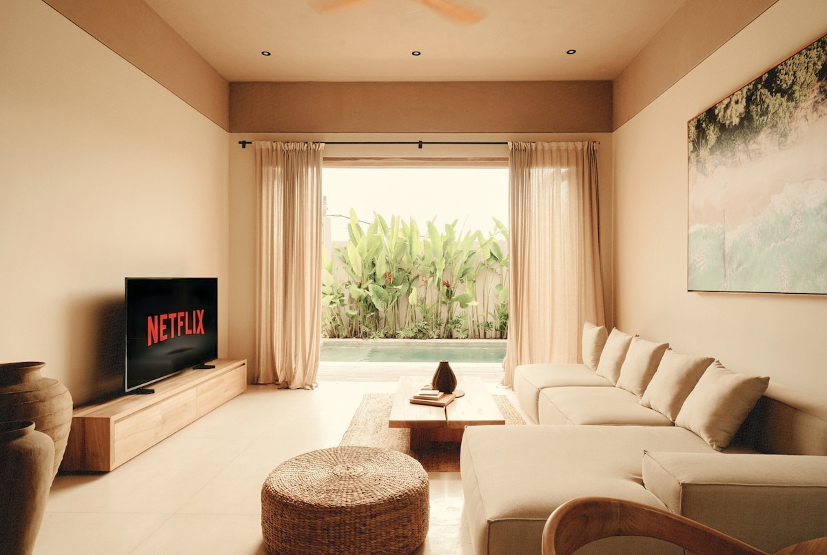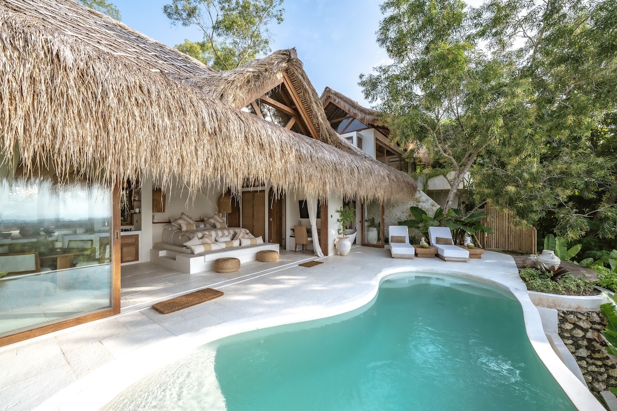 🌴 Welcome to UMA AMI 🌸 A brand new designer 3BR villa in central Uluwatu, in between Bingin and Padang Padang, where tropical charm meets modern elegance. Swim in the iconic private pool, lounge on sun-drenched daybeds, or gather under soaring wooden ceilings beside an indoor palm. Each room is uniquely styled with natural textures and luxe touches. Just minutes from Bali’s best beaches, cafés, and sunset spots — UMA AMI is peaceful, walkable, and effortlessly beautiful.