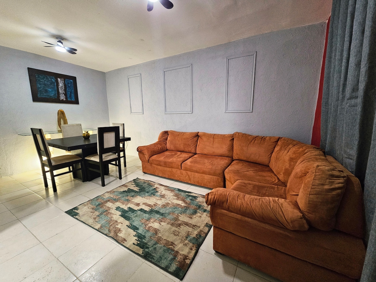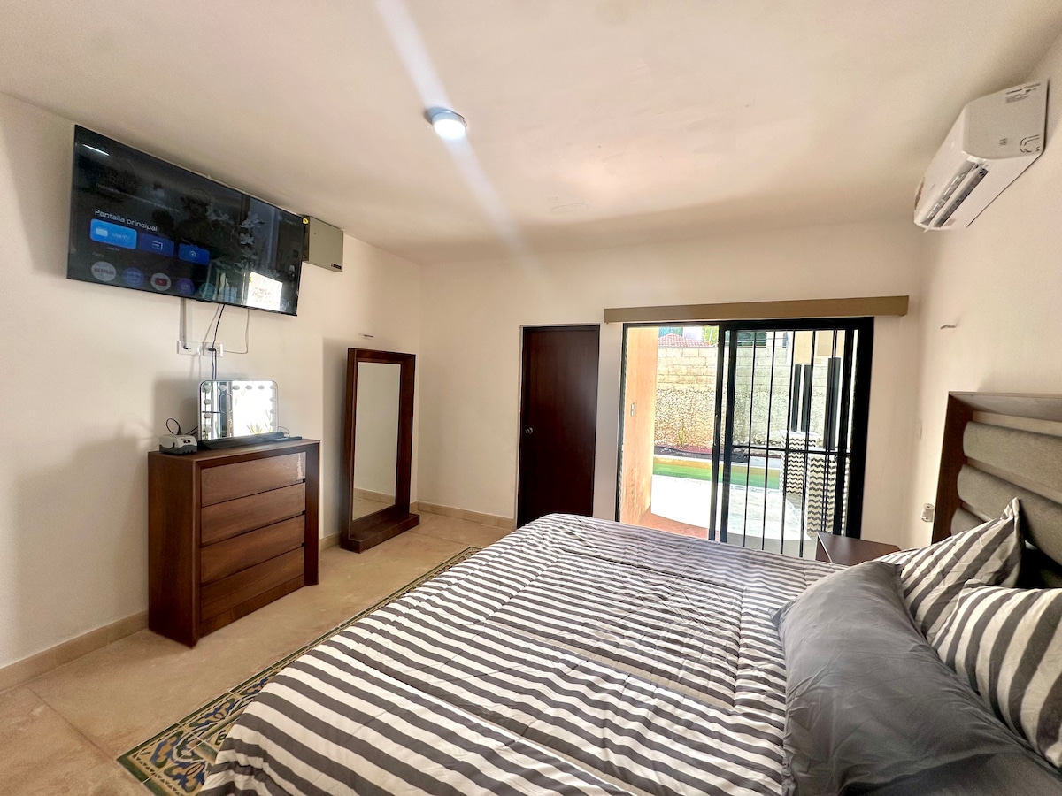 Welcome to our private accommodation in Mérida, Yucatán! Perfect for families, couples, or business trips. • 2 spacious bedrooms with A/C and Smart TV • A/C living room with Smart TV • Full bathroom with hot water • Fully equipped kitchen: stove, fridge, utensils, and more • 200 Mbps fiber-optic Wi-Fi • 100% self check-in and check-out • Private parking for 2–3 vehicles • Minutes from downtown, the airport, and shopping centers Available 24/7 for any questions.