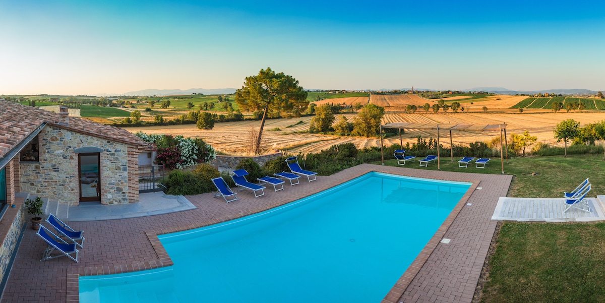 Nell’affascinante campagna Toscana,tra ulivi e vigneti una villa in pietra,in posizione strategica per cogliere i segreti di Toscana e Umbria aria condizionata e piscina con area wellness per il vostro relax e confort Villa Senaia è una grande casa con travi in legno, in una splendida posizione in collina con vista idilliaca che affaccia su uno dei luoghi preferiti della campagna toscana, un ambiente attraente per mangiare all'aperto, bevendo vino toscano e ascoltando i grilli e le cicale