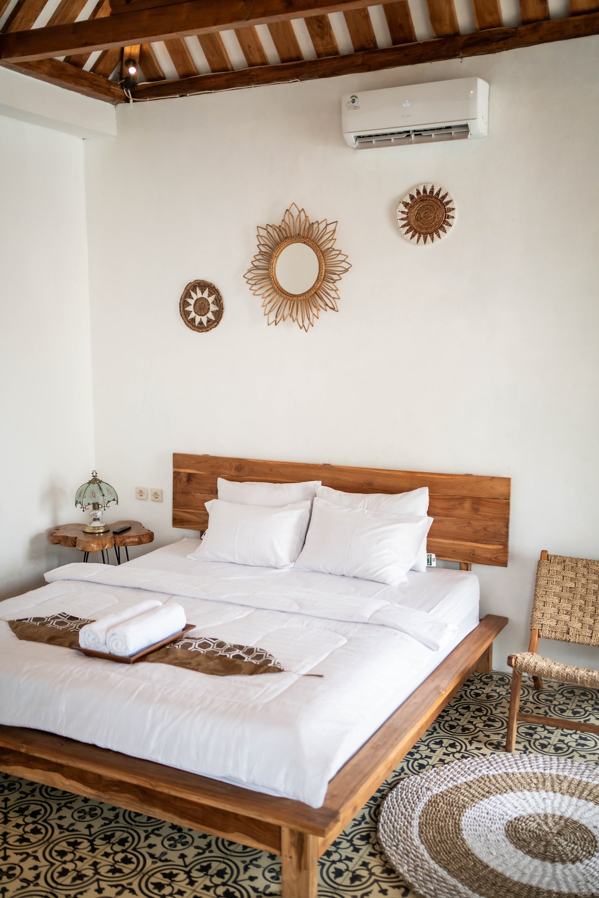 Forget all your worries in this peaceful place. the concept of a villa with beautiful nature and stunning views, plus architecture designed with a rustic feel and decorations that reflect local wisdom. We have 6 villa in the area, this villa has surrounded by 10ha rice field view. You can feel the spacious of greenery rice field, see the farmer doing their work, see some village animal if you're lucky.