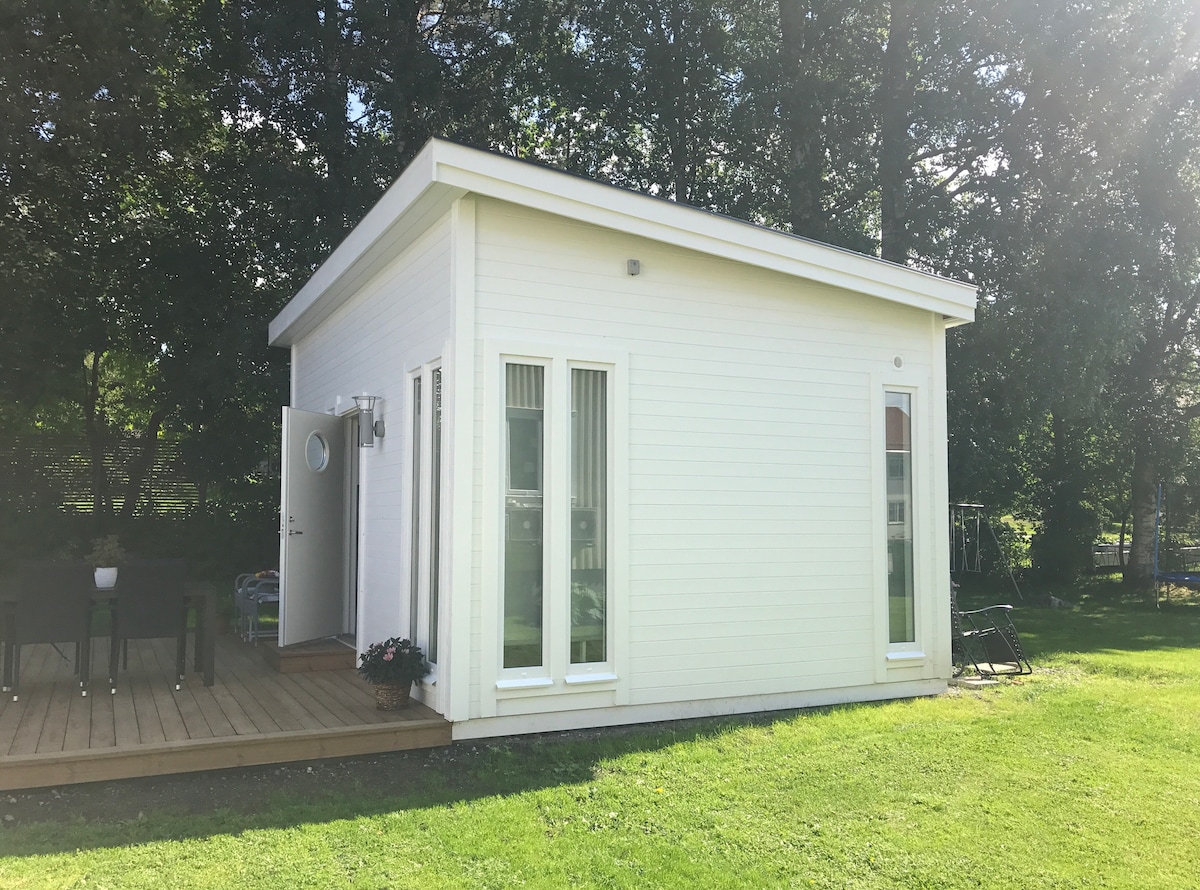 Hej, vi är en familj som hyr ut ett attefalls/ tiny house på Sofiehem. Närhet till älven, sjukhus och universitetsområdet. Huset är på 25 kvm plus ett sovloft och altan. Läget är mysigt, lugnt och tyst. Stor altan med sittmöbler samt möjlighet att låna grill. Grön och lummig trädgård. Om man har svårt att klättra upp till sovloftet finns en extra säng att ställa in i huset. Inredningen är ny och fräsch, och hemmet känns ljust och gemytligt. Nära till flygplats och hållplats för flygbussen.