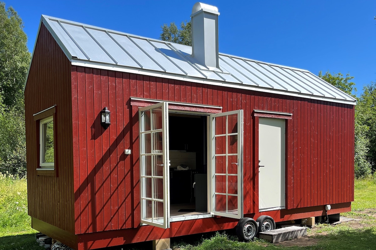 Lantligt belägen på Ön (en Ö i Umeälven) och med promenadavstånd både från flyget och centrala Umeå hittar du detta microhus på hjul. Huset är fullt utrustat med alla bekvämligheter och du väljer själv om du vill köpa till frukost eller ordna själv i det fina köket. Sommartid har vi öppet hantverksbutiken och trädgårdskafet Eljest på samma gård. Stor parkeringsplats finns ca 50 meter från huset. Möjlighet finns att ladda din elbil till självkostnadspris. Varmt välkommen