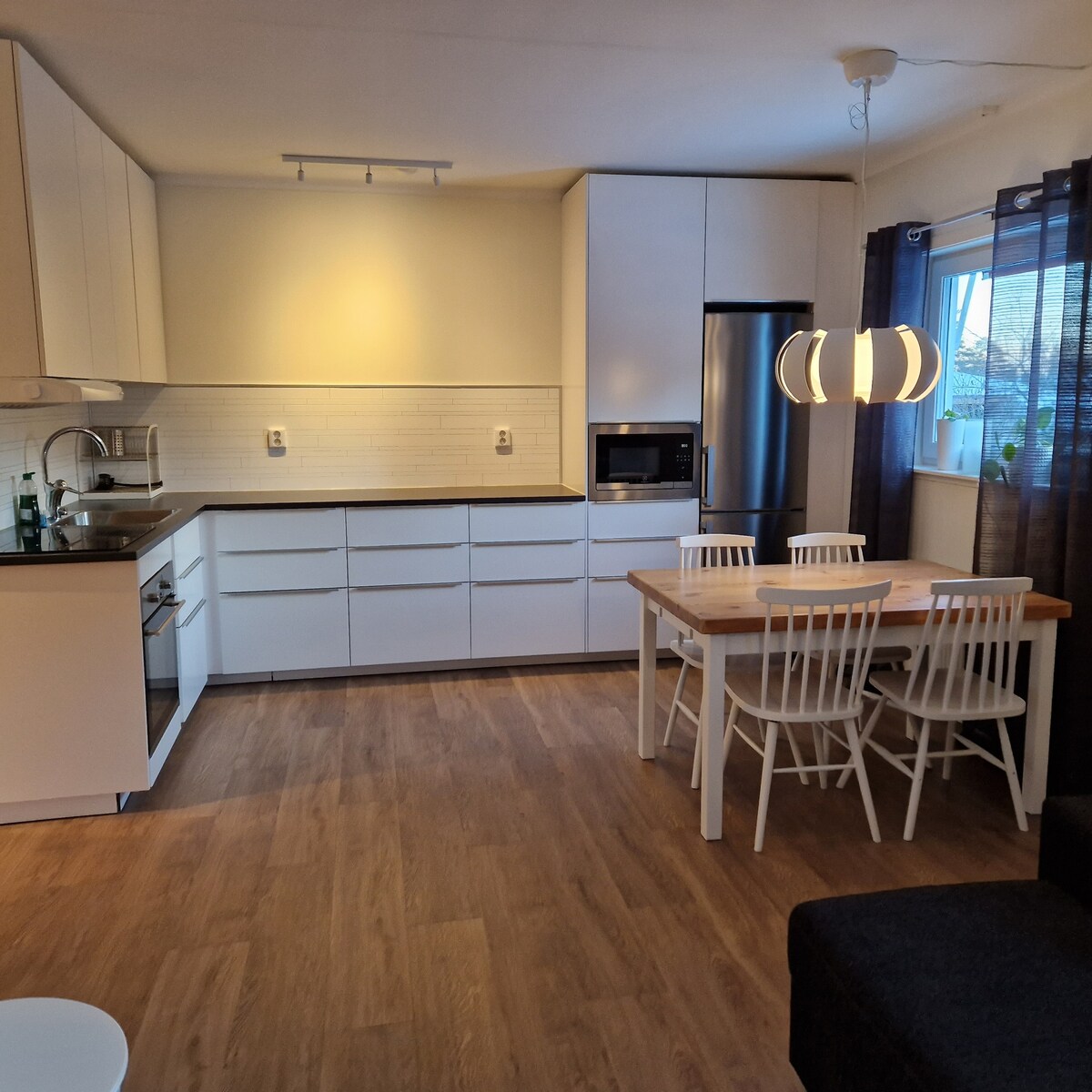 Vi erbjuder en ljus och nyrenoverad vindsvåning på ca 30 kvm. Lägenheten är inredd med de bekvämligheter som krävs för ett bekvämt boende för upp till två personer. Mysigt kök med ny kyl/frys, spis och ugn samt micro med köksartiklar. Nyrenoverat badrum. 160cm säng, sittsoffa samt en fotölj. 55" smart TV, WIFI. Lägenheten har smidigt kodlås för er bekvämlighet. Gästen ansvarar för städning innan utcheckning. Er host bor i samma hus och är tillgängliga vid frågor.