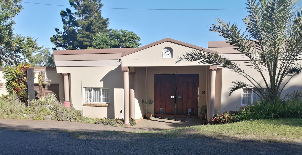 A very private ground floor unit. Fully furnished positioned on a hill overlooking the ever-changing Indian Ocean and Illovo River in Kwazulu Natal. It's a perfect, peaceful, romantic getaway and the ocean and lagoon can be seen (and heard) from all rooms. Stunning views. Viber and wi-fi available. Lock up garage right next to front door. Close to safe beaches and shops.