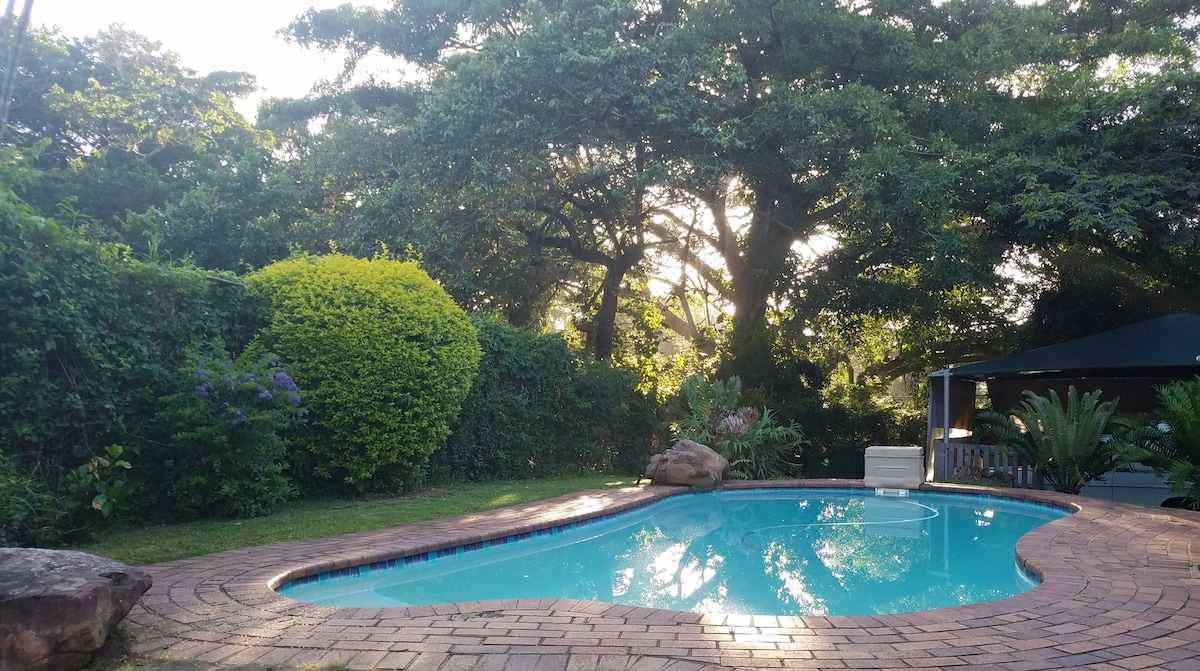 Based in central Hillcrest, the Tennis Court Cottage is a recently renovated, self catering garden cottage located on a well secured property within a lush, green garden. The space is a private and peaceful, equipped with all the amenities required by the business or leisure traveler. Self check in and out is quick and easy via a keypad at the main gate, a key box is located at the entrance to the unit. Due to its size the unit is ideally suited for short term stays.