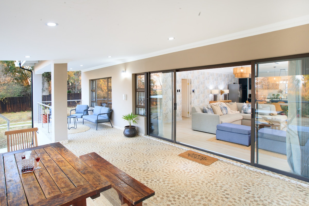This beautiful home is situated on a ridge with breathtaking 360* views of the Drakensberg Mountains and rolling hills of the midlands; a short distance from the N3, but set back from the road so it is peaceful and quiet. We are just 2km from some of the best MTB and running trails in the country, and perfectly located for the abundance of great restaurants, coffee shops and activities in the area for both adults and children. An ideal spot to retreat with family and friends, or get active.