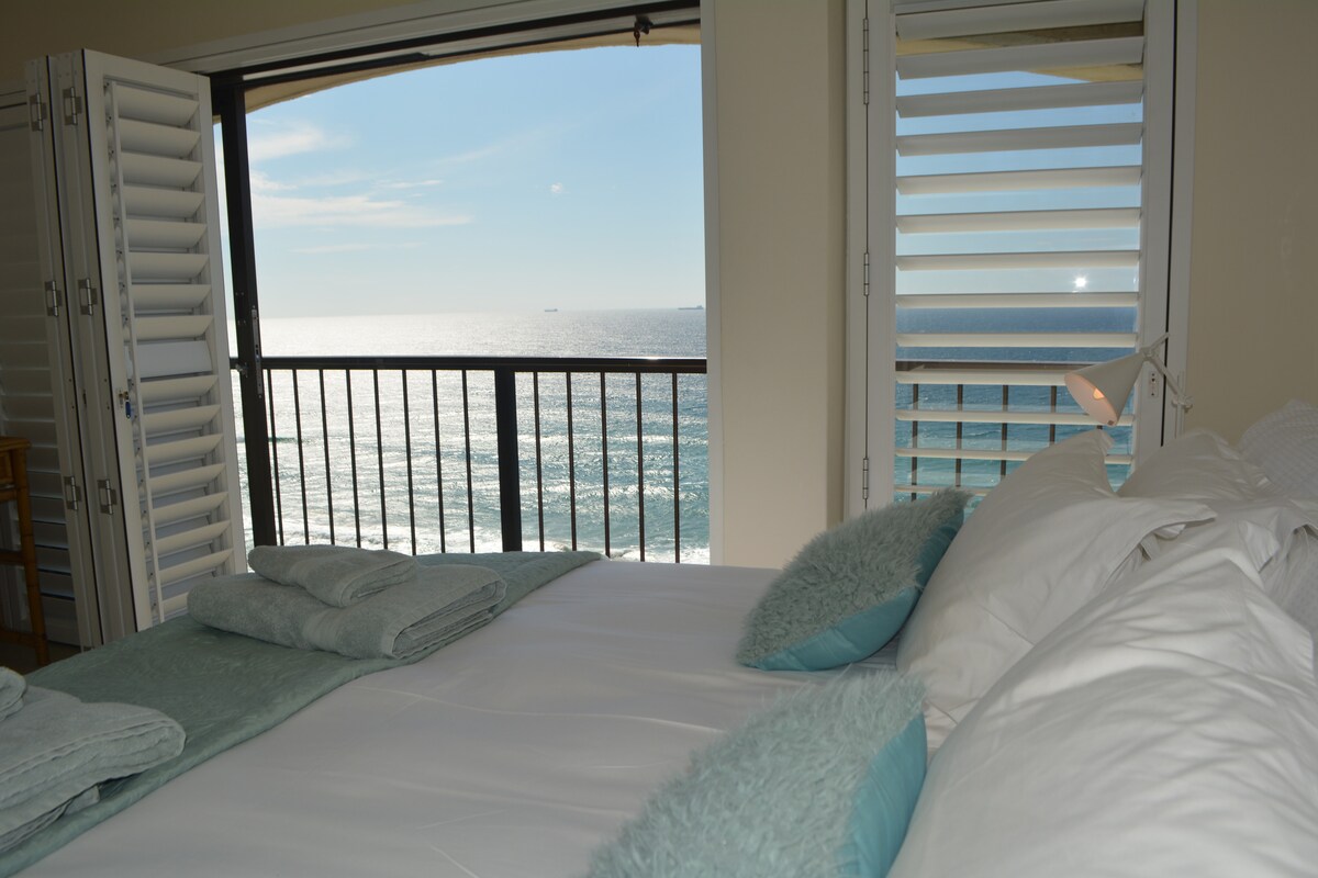Spectacular! Beachfront!m beauty! - free WiFi - fully serviced - DSTV - air conditioned MAGICAL property offers modern pizzazz, central with all the hotel like amenities Concierge to welcome you, Modern open plan living leads to an entertainment patio. 3 magnificent bedrooms, all with SUPERB sea views. Direct beach access, directly located on promenade . - Dedicated workspace in foyer Allocated covered parking, trailer parking. Feel and hear the ocean throughout