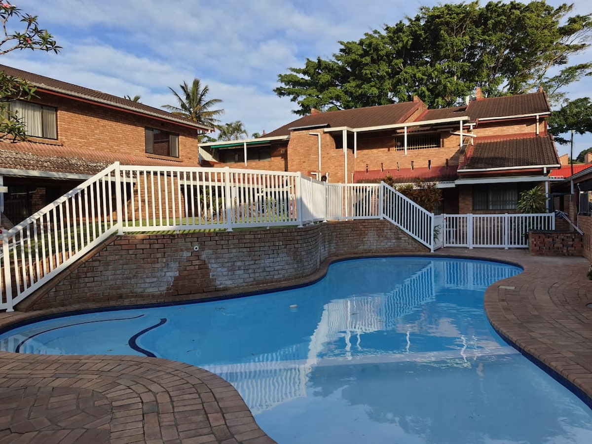 Take a break and unwind at this peaceful oasis. Ideally situated in the main street of St Lucia, we can accommodate 2 adults and 2 children under the age of 12 years old. Beautiful little garden and braai area where you can unwind and relax. On the property there is a shared swimming pool and squash court. Free secured undercover parking.
