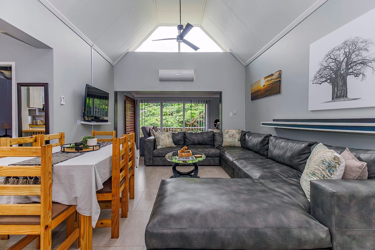Escape to our newly renovated haven - the perfect family retreat! ☀️ Enjoy high ceilings, a spacious kitchen, large living area and backup solar power system. Relax on the patio by the fireplace overlooking our lush garden🌿 Ideally located: Short walk to shops & restaurants 🌊 Minutes from the beach 🦛 Near iSimangaliso Wetland Park (World Heritage Site) Discover the perfect blend of comfort and adventure in the heart of nature. Your family getaway starts here!