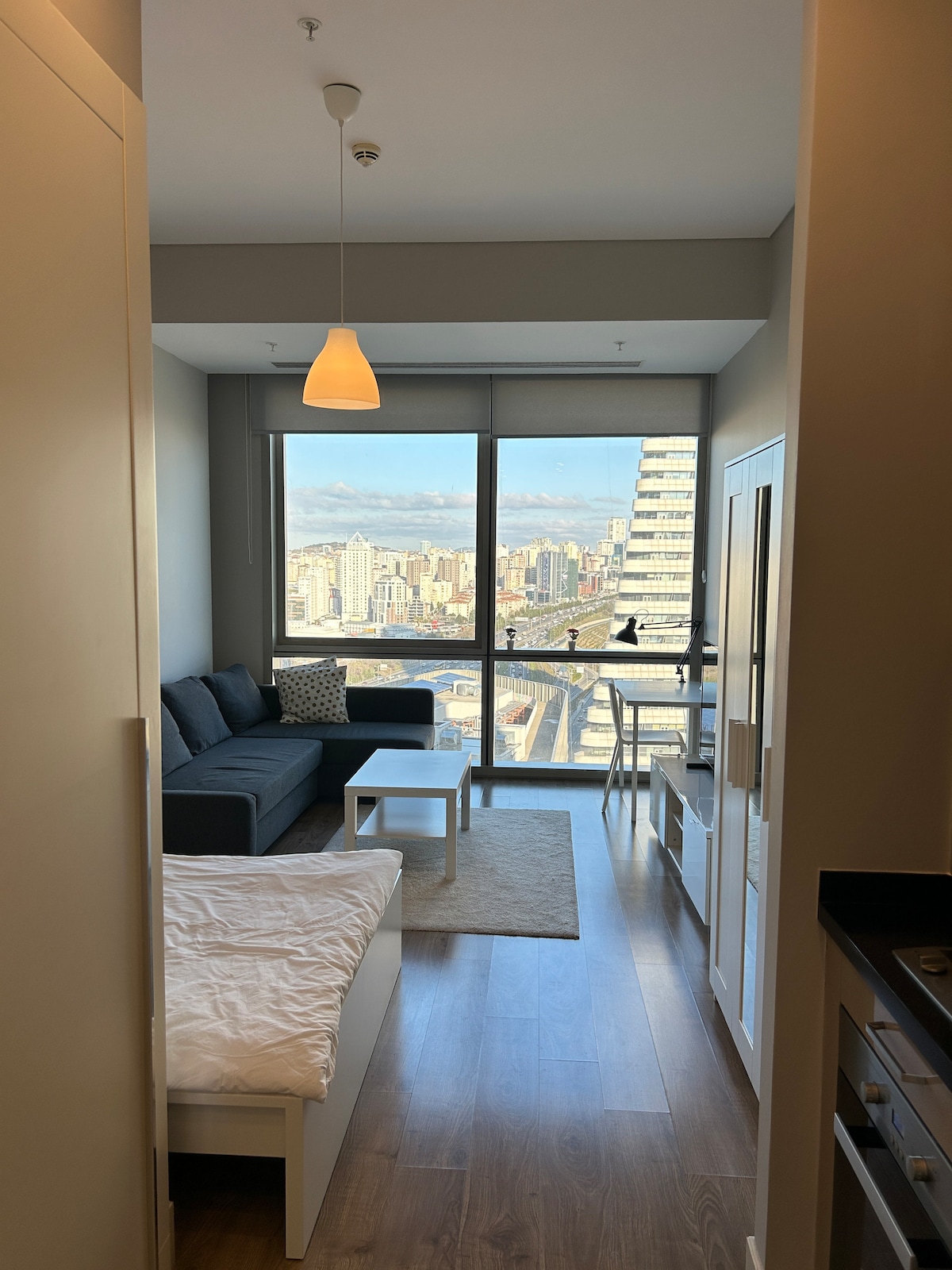 Amazing view of the istanbul from the 38th flat of the residence from big panaromic wall type windows. you will able to reach all equipment for kitchen. offcourse not mentioning a water heater and a few plate only. microwave owens coofe machines, toast machine blenders modern plates. all equioments in the flat not basic type we tried to place best of all including 52 inch tv. the place is in the middle of 3 biggest mall. 24 hours security is available and receptiom call taxi 24 hrs for you.