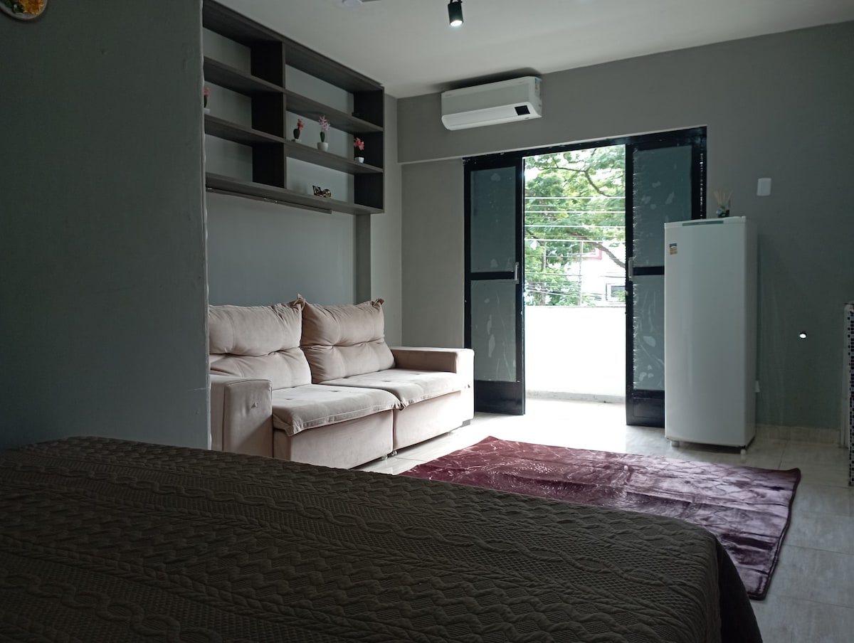 Loft modesto mas funcional climatizado em dias de calor mobiliado com eletrodomésticos microondas tv ar condicionado com segurança e Sossêgo.localizado no CENTRO próximo de tudo economizando deslocamento em lugares distantes.Ambiente seguro e familiar.
