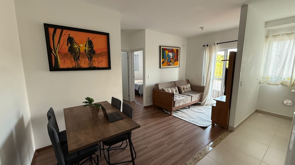 Apartamento, aconchegante e tranquilo, para você, trabalhar, relaxar ou curtir com a família, perto de tudo o que precisa, como: restaurantes, supermercados, padaria, açougue e clube de lazer. Com vista privilegiada de uma área verde e muito bem-localizado. Acomoda com conforto e segurança até 4 pessoas, com garagem coberta, para seu veículo.