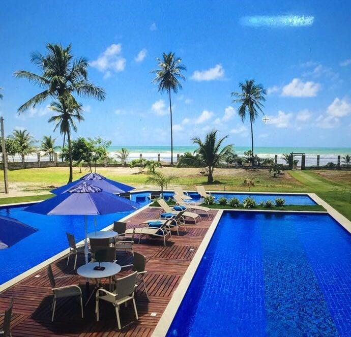 Condomínio alto padrão, pé na areia, localizado em frente à praia, próximo ao aeroporto, com infraestrutura de lazer, parque Infantil, piscina de frente ao mar e churrasqueira. Apartamento aconchegante com linda vista para o mar, ar condicionado na sala e nos 2 quartos(sendo uma suíte), SmartTV com SKY, internet fibra óptica, cervejeira, cozinha completa e máquina de lavar KIT PRAIA: cadeiras de praia, guarda-sol e cooler para maior conforto ao desfrutar das águas quentes da praia