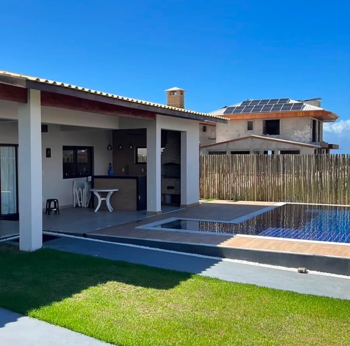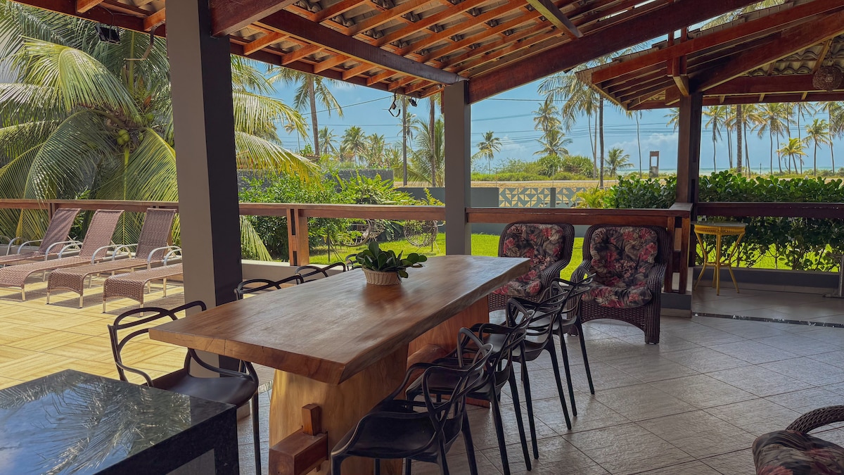 Cururupe House - sua casa de praia em Ilhéus para curtir com quem você ama Seja para um fim de semana em família, férias com amigos ou uma comemoração especial, este é o cenário ideal Em frente à praia, a casa oferece piscina, área gourmet com churrasqueira, chuveiro externo e amplo jardim. Conta com 3 quartos com ar-condicionado (1 suíte), 2 banheiros (sendo 1 externo), sala de estar com TV e cozinha equipada — tudo pensado para conforto e momentos inesquecíveis à beira-mar.