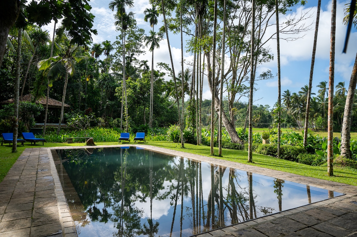 A home nestled within paddy fields, surrounded by coconut palms and birdsong. A rare blend of seclusion and connection, close to village life yet a quick tuk ride to the famous beautiful beaches. For nature lovers seeking a unique experience and a glimpse into the hidden beauty of rural Sri Lanka. Wander the tropical garden, cool off in the natural plunge pool, and enjoy meals prepared with ingredients from our garden. Slow down, reconnect with nature, and the quiet rhythm of island life