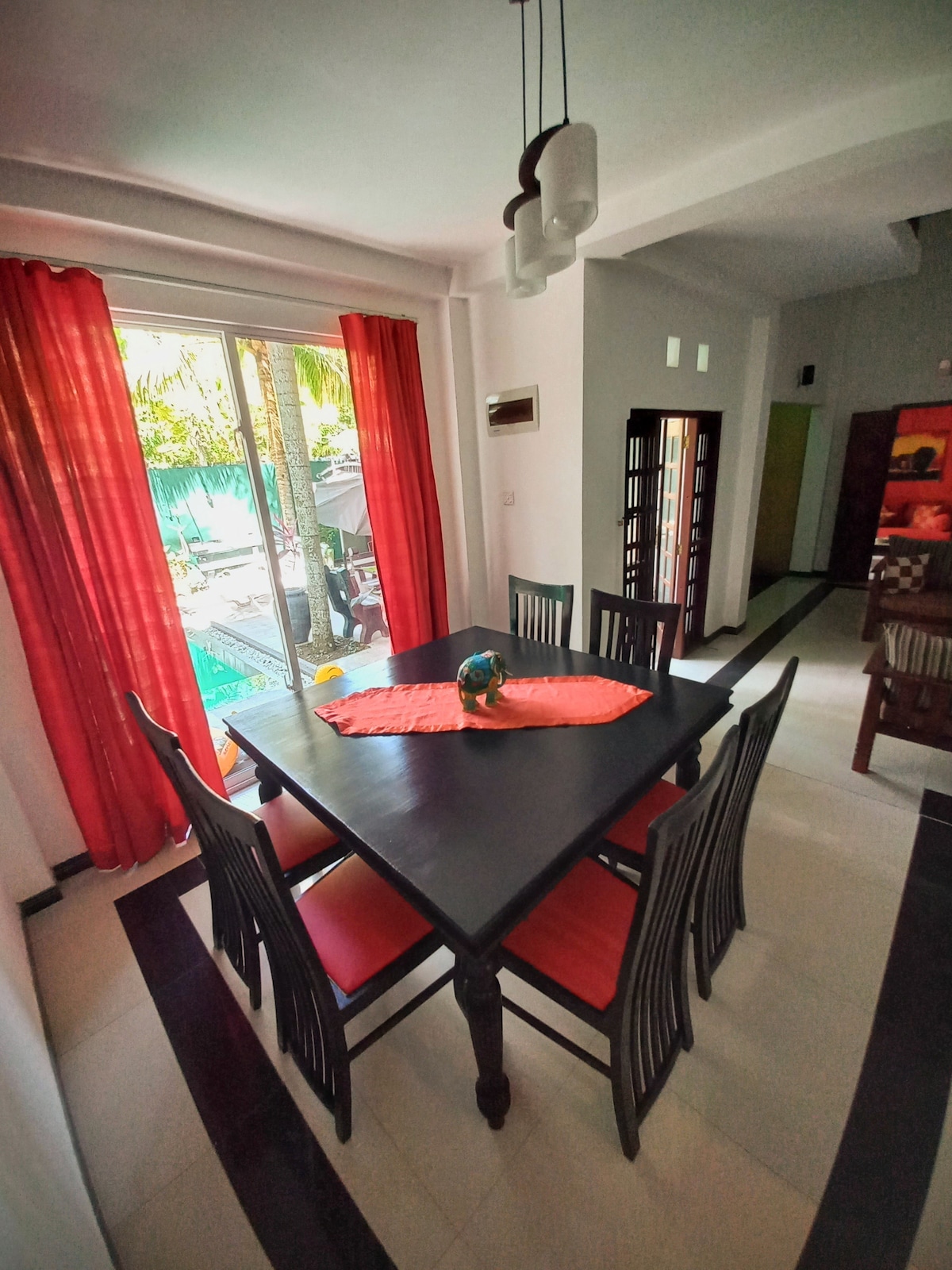 "Enjoy a stylish family retreat at our serene villa in Welhengoda, Ahangama, just moments from the stunning Kabalana Surf Beach. Our villa features five spacious bedrooms, each with its own attached bathroom, air conditioning, and hot water. Relax by our beautiful swimming pool, or cook up a feast in the fully equipped kitchen. Stay connected with high-speed fiber internet, all while enjoying the tranquility of our peaceful, quiet location—a true escape from the everyday."