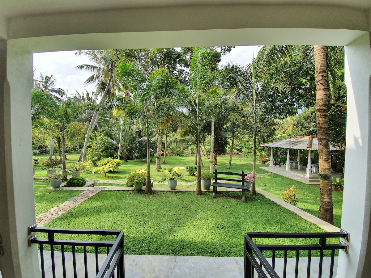 Self-contained private Bungalow on the grounds of Karma House. A contemporary take on the Colonial style. 12-meter veranda overlooking paddy fields. Open living as it should be in the tropics. Secure A/C bedroom and bathroom. 12-meter swimming pool , shared use 2km to the coast. Generator on site Fibre internet connection which is perfect for all working remotely. Total privacy is given and expected. Offered as self-catering.