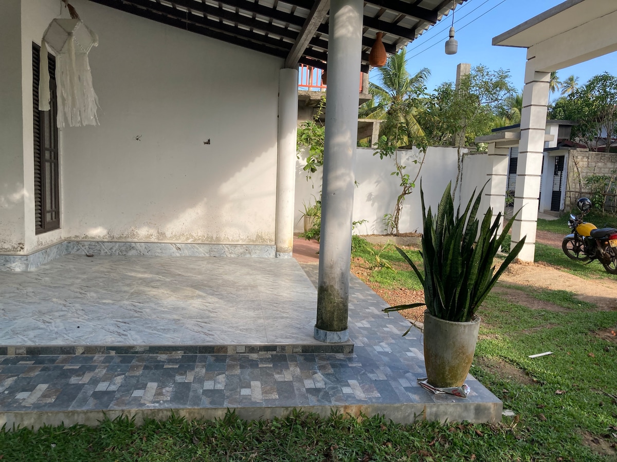 Hi-Speed Fibre Internet for remote workers.....Luxurious home suitable for families with small kids boasting a large tropical garden enjoying country & sunrise views. 3 x Spacious Air Conditioned double bedrooms, a modern indoor kitchen, 2 x bathrooms, an outdoor shower, an open plan living area, and a terrace for Al Fresco dining. The garden is a paradise for nature and wildlife such as monkeys, chipmunks, peacocks and the occasional spider. We are approx 6-8 min walk from Mirissa Beach.
