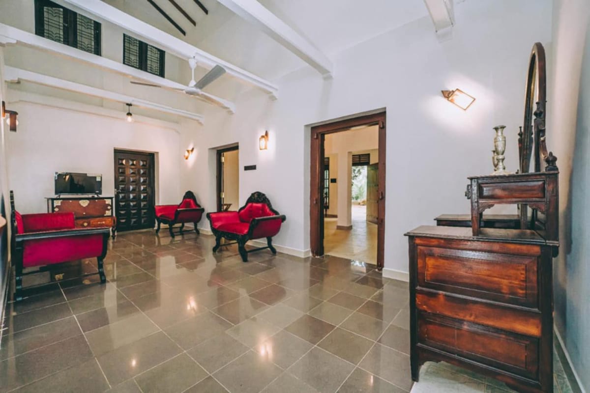 This property is our ancestral home constructed before the World War 2 . Situated in a large coconut plantation 4 bedroom home, surrounded by green natural landscape . Eco friendly atmosphere and the house is powered by Solar PV and Solar hot water is provided all showers in toilets. A shared infinity fresh water pool only for the use of the 2 properties within same the compound. Driver’s bed space can be arranged at a nearby location on prior request and charged separately.