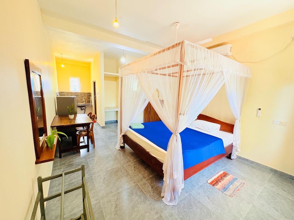 Charming Airbnb in Mirissa, Sri Lanka: our cozy room is just 200 m from Mirissa Beach, set in a peaceful area surrounded by lush jungle. Wake up to free yoga classes and enjoy a delicious breakfast served in our restaurant, offering a stunning treetop view. Perfect for relaxation, surfers, and nature lovers seeking comfort, friendly service, and easy access to the beach, shops, and local seafood restaurants. Enjoy sunset BBQ nights and personalized tips to explore nearby attractions.!!