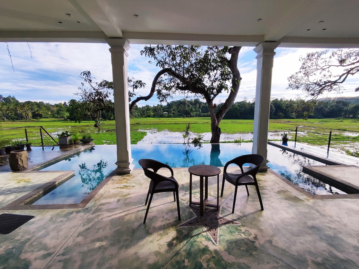 “Welcome to Villa Seven faces, Nestled in Unawatuna with breathtaking views of Paddy fields, mountains, Monkeys, and over 50 varieties of Birds. This villa features 2 spacious bedrooms, each opening to a private balcony that captures the breathtaking expanse of greenery. The open-air living and dining area seamlessly blends indoor comfort with tropical charm. A large swimming pool, set amidst nature, invites guests to soak in the peaceful ambiance and enjoy unforgettable moments with loved ones.