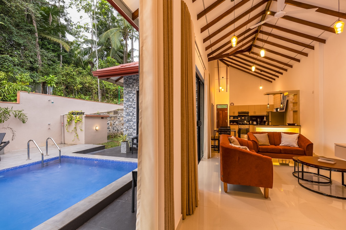 The Gatehouse is an exclusive, private self catering getaway for a couple or a solo traveller. It is located at the entrance to the estate and features a private 8-metre pool. It is an ideal home base to explore the local areas of Galle and beyond. Everything you need is provided in stylish, designer luxury. The washing machine and dryer make travelling easy and hiring a scooter from Epic Rides or using Uber or Pick me apps allows easy beach and local historic site access.