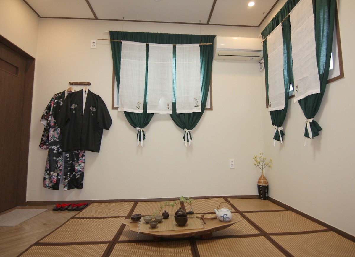 공간 더 쉼| 단독독채숙소 |다도(전통차예절지도) |기모노 체험 |히노끼탕