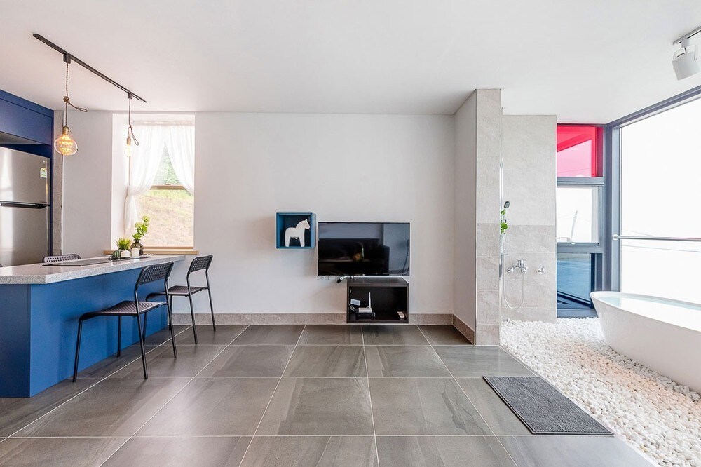 안녕하세요. 저희는 다양한 휴식 공간을 연구하고 제공하는 ONDA입니다. 이 곳에서 머무르실 모든 분들께서 편안하고 행복한 시간을 보내기를 바랍니다. [숙소 소개] 봄*여름*가을*겨울 사계절 내내 아름다운 풍경과 휴식을 얻을 수 있습니다. 해변가에 위치한 사제스힐에서 소중한 사람들과 추억을 쌓으세요. [객실 유형] 분리형: 거실+주방+침실A(퀸1)+화장실1