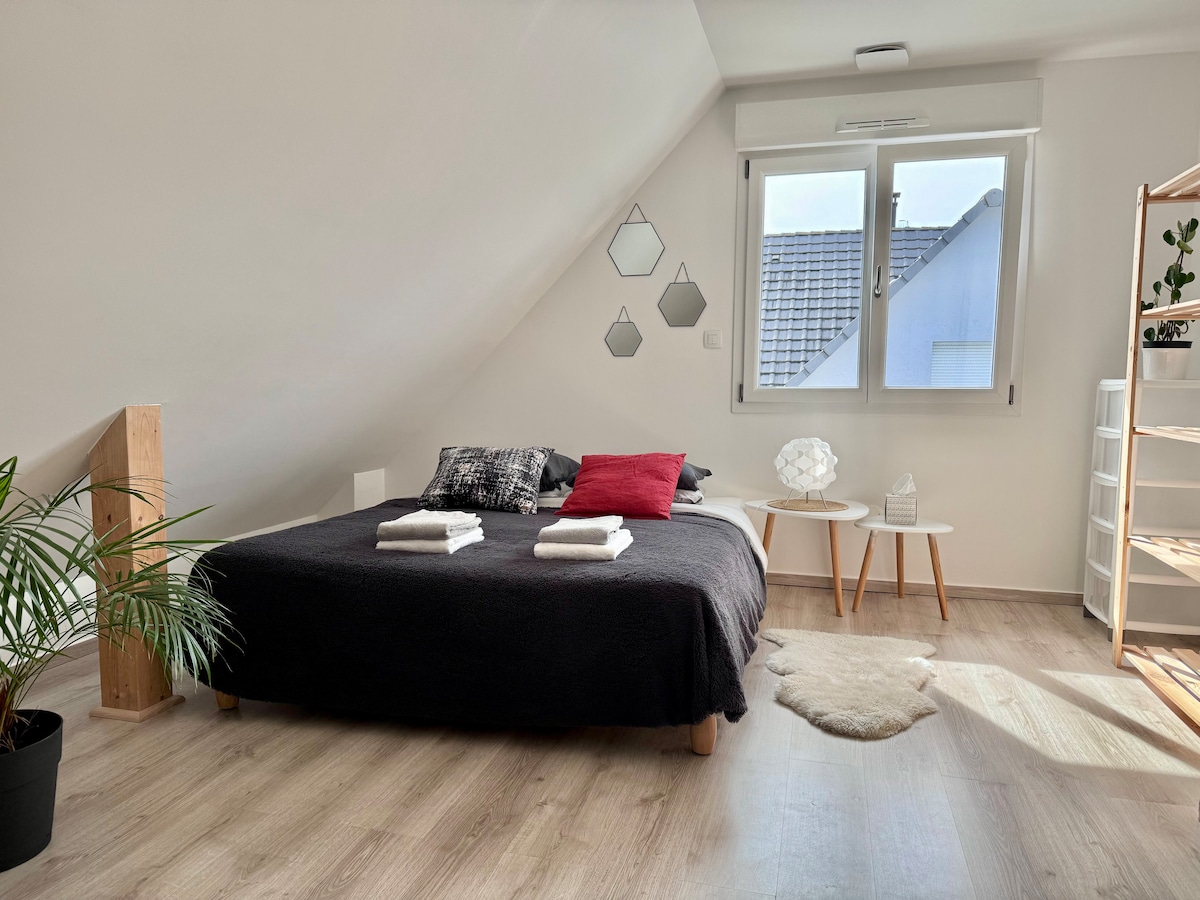 Bienvenue dans ce grand studio entièrement rénové de 29 m², idéalement situé au cœur du centre-ville d’Ensisheim. Que ce soit pour un week-end détente, une escapade professionnelle ou des vacances en Alsace, ce logement cosy vous accueille tout confort, avec 1 lit double, 1 lit simple et 1 lit bébé sur demande dans une pièce lumineuse et climatisée. Logement non-fumeur