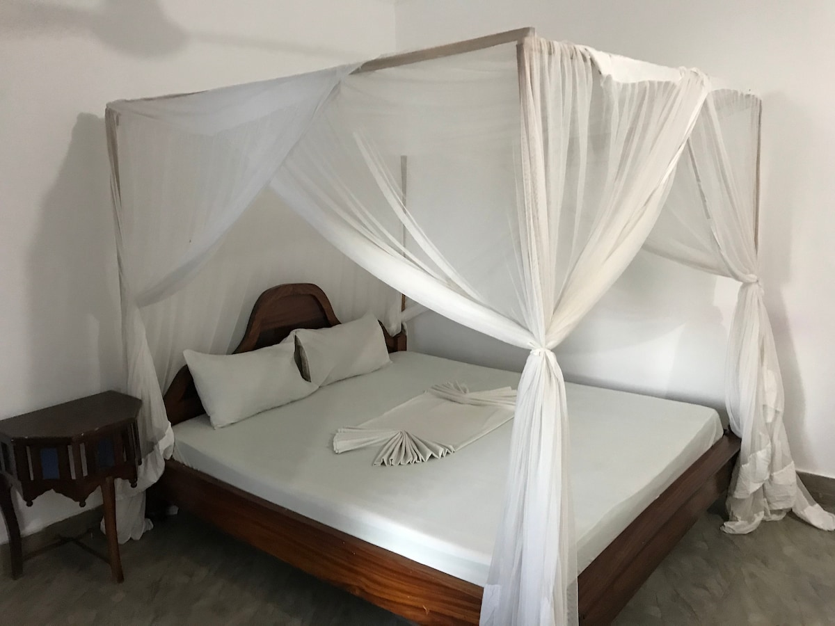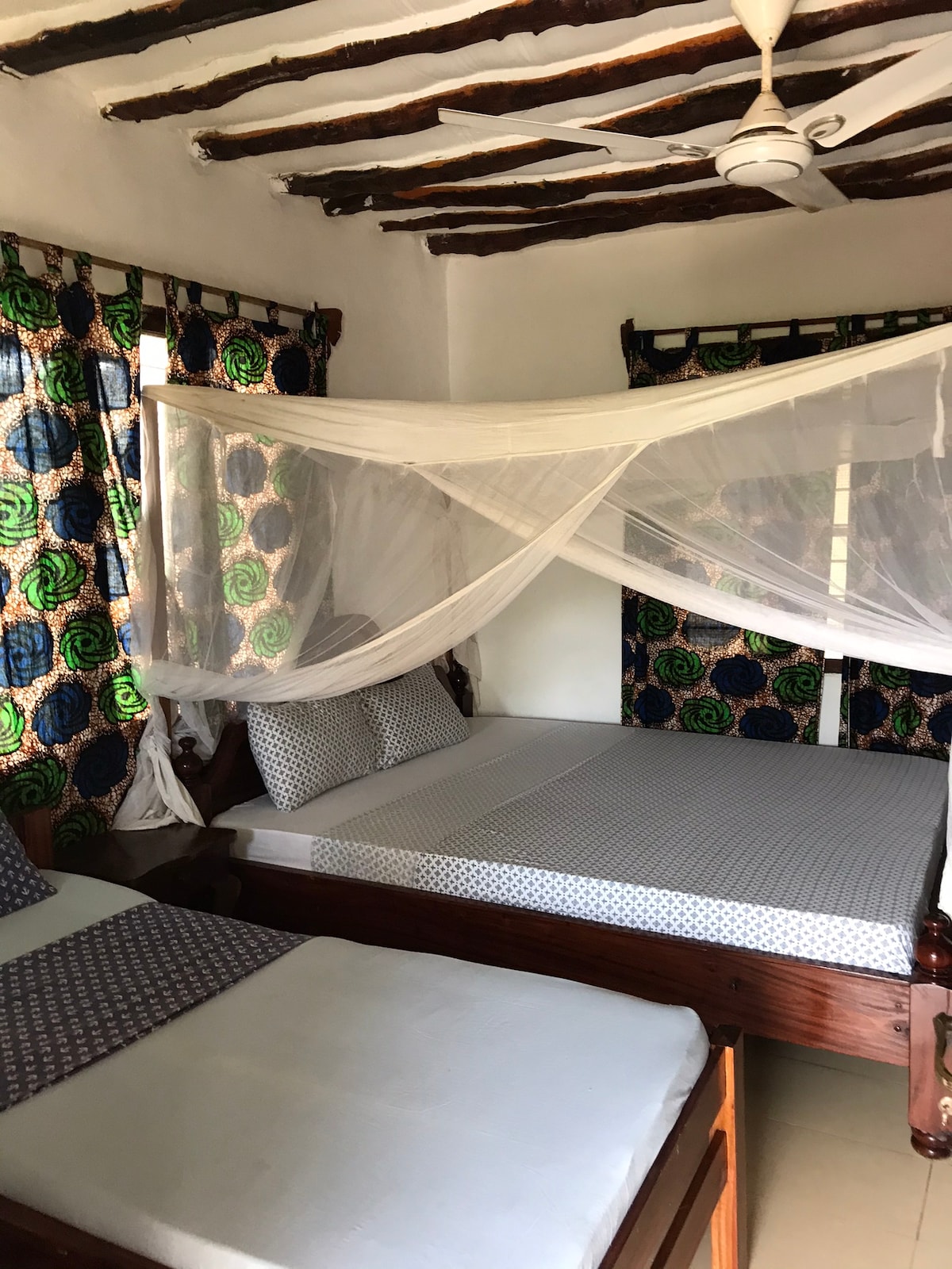The rooms, right in front of the sea, are part of a cozy resort on the beautiful Pwani Mchangani beach. Feet on the sand outside your door, fresh sea breeze and stunning sunrise views through your window. Bar, restaurant and swimming pool available.