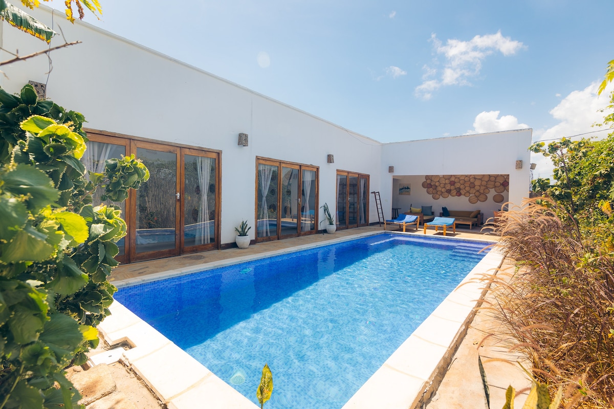* Villa is private, it has it's own private pool and nothing is shared* Escape to our unique and stylish Bali inspired retreat, nestled amidst the breathtaking beauty of East Nungwi. A place far away from the crowds, where every detail harmonizes with nature. Wake up to the majestic sight of the sunrise, as you find yourself cocooned in lush greenery. Take a plunge into our private pool or simply relax in the midst of this picture perfect paradise. Come, experience the magic of Zanzibar.