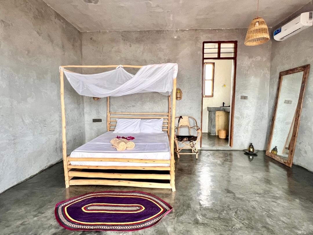 2 bedroom villa with fully equipped kitchen and spacious bathroom. This villa sleeps up to 4 people. A stunning fresh water pool is right in front of the living room and the pristine beach is just few steps away. The property is surrounded by scented Lemon grass(Mchaichai) and many other plants in a secure private residency. All rooms are air conditioned and well ventilated. Cozy outdoor lounge, dinning/BBQ makes a perfect outdoor living. Sunbeds are also available at our private beach.