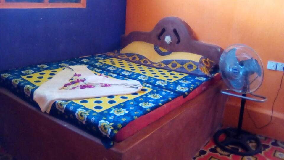 Semi-open room, close to nature, be in touch with your surrounding while sheltered in a king size bed with great view into the palm trees and mikadi trees of the area. Feel the breeze in the night, listen to the night birds and be one with nature. Sleep on your roof top terrace underneath the starlight or just enjoy sunset, we have room service: order a candle light dinner under the moonlight!