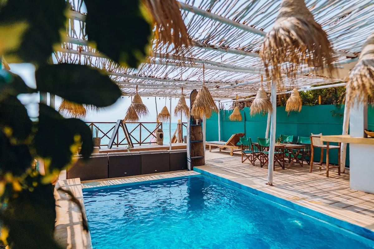 Hakuna Matata Villa in the centre of Paje, 150m from the beach, 24hr supermarket and 24hr bar/restaurant. Our pool is known to be one of cleanest in Paje! We have good wifi, AC, and a restaurant with an excellent chef. In our place it is easy to connect with traveler guests at our big dinner tables in the restaurant and the shared chilling area. But it is big enough to provide privacy if needed. We get the best reviews about the location and our friendly staff!