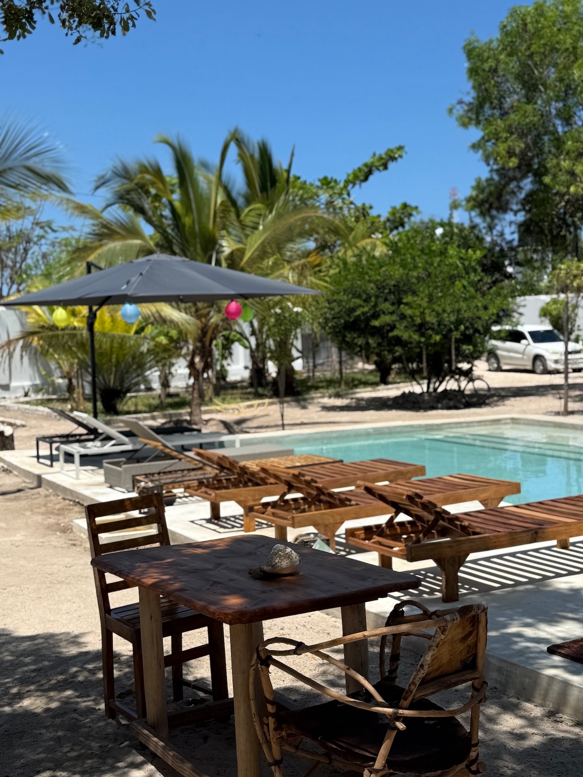 The suite is a part of 8 rooms boutique hotel in Nungwi. Nestled in a tropical paradise, our stylish accommodations are a perfect blend of comfort and charm. We invite you to slow down and experience Zanzibar ‘Hakuna Matata’ and ‘Pole pole’ life. Unwind by our beautiful swimming pool and enjoy our lush tropical garden. At our hotel, we treat everyone like family, ensuring that all guests enjoy their stay to the fullest. We're located 650m from the beach (~7 mins walk).