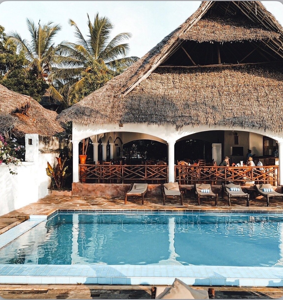 Unsere Bungalows im antiken, zeitlosen Design mit marokkanischen Elementen bieten dir ein einzigartiges Wohlfühlambiente. Entspanne dich im gemütlichen Queensize-Bett mit Moskitonetz und genieße das angenehme Raumklima unter dem traditionellen Makuti-Dach. Ausstattung im Überblick: - privates Badezimmer mit Open-Air-Dusche - Deckenventilator - Terrasse mit Blick auf den Pool vorne, 2. Terrasse hinten - Safebox - extra Matratze auf Anfrage - tägl. Housekeeping - Basis-Frühstück inklusive