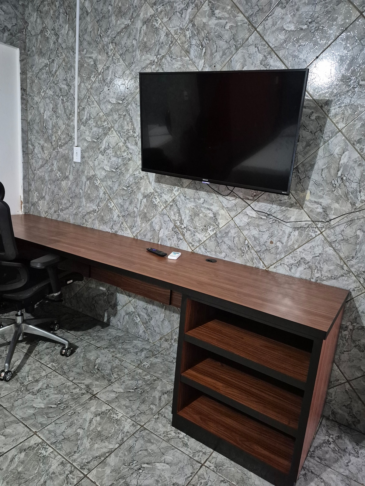 Meu imóvel tem 04 apartamento como em um pequeno residencial. um quarto com cama de casal, tv 40 polegadas, ar condicionado split, uma escrivaninha com cadeira, guarda roupas,. tem uma cozinha com geladeira, fogão, armário, micro-ondas, suporte com água mineral, uma mesa com cadeiras para as refeições, alguns utensílios domésticos básicos para preparar um café da manhã ou um almoço, o local e próximo a universidades, ao shopping três américas, padaria, mercadinhos, estacionamento, WI-FI 500MBPS.