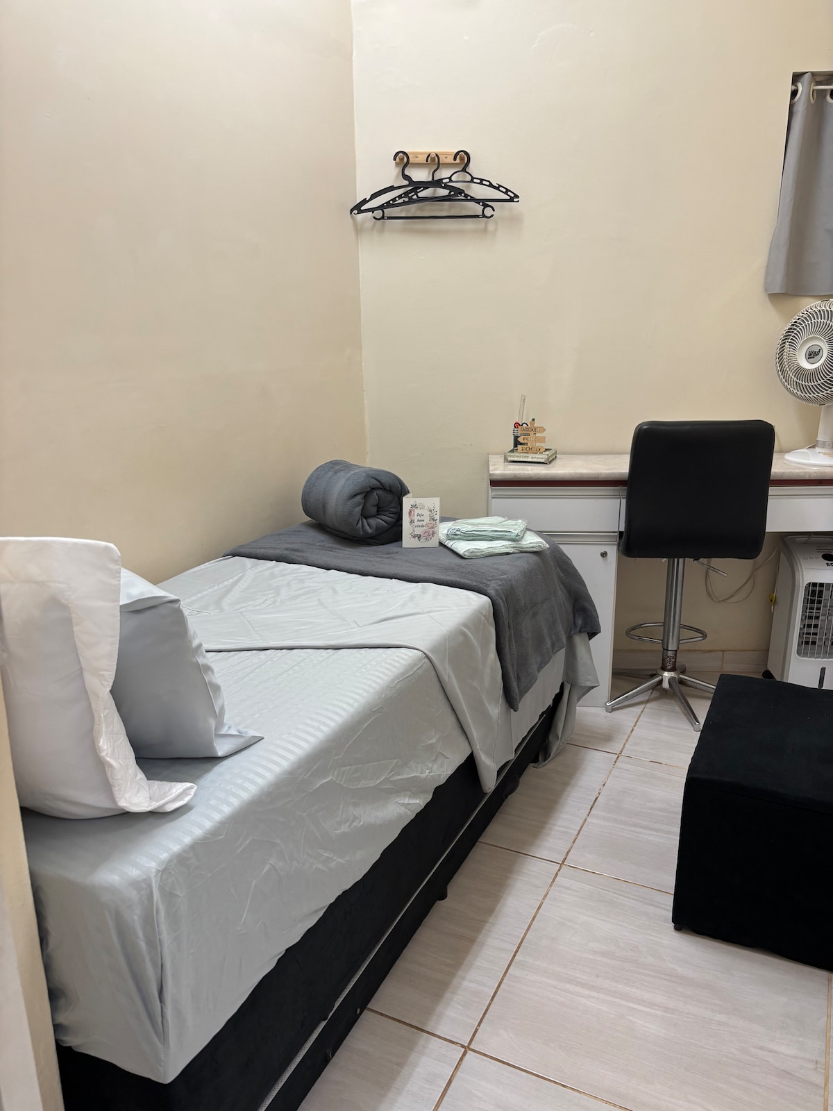 Perfeita para quem busca praticidade, conforto e estilo! Essa kitnet foi planejada com muito cuidado e bom gosto, ideal para estudantes, profissionais ou visitantes que querem um cantinho limpo, tranquilo e bem localizado em Barão Geraldo. O imóvel conta com cama confortável, roupas de cama macias, cozinha completa, perfeita para quem gosta de cozinhar. O banheiro é bem equipado, e a charmosa mesinha de jantar para duas pessoas é ideal para estudar, trabalhar ou curtir uma refeição tranquila.