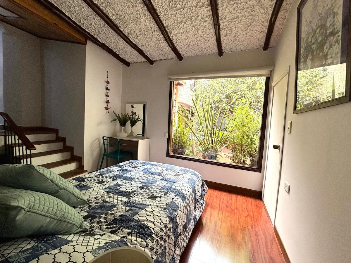 Espacio moderno, tranquilo y estratégico en el barrio Spring (norte de Bogotá). A 3 cuadras de TransMilenio Alcalá y cerca a la calle 134. Ideal para ejecutivos o estancias confortables. WiFi alta velocidad, chimenea a gas, lavadora, secadora y parqueadero cubierto. Edificio con ascensor y zonas comunes (terraza BBQ y salón). Cuenta con acogedor altillo tipo loft que hace la experiencia única (acceso por escaleras plegables) Más de 100 reseñas y calificación 4.9 garantizan calidad.