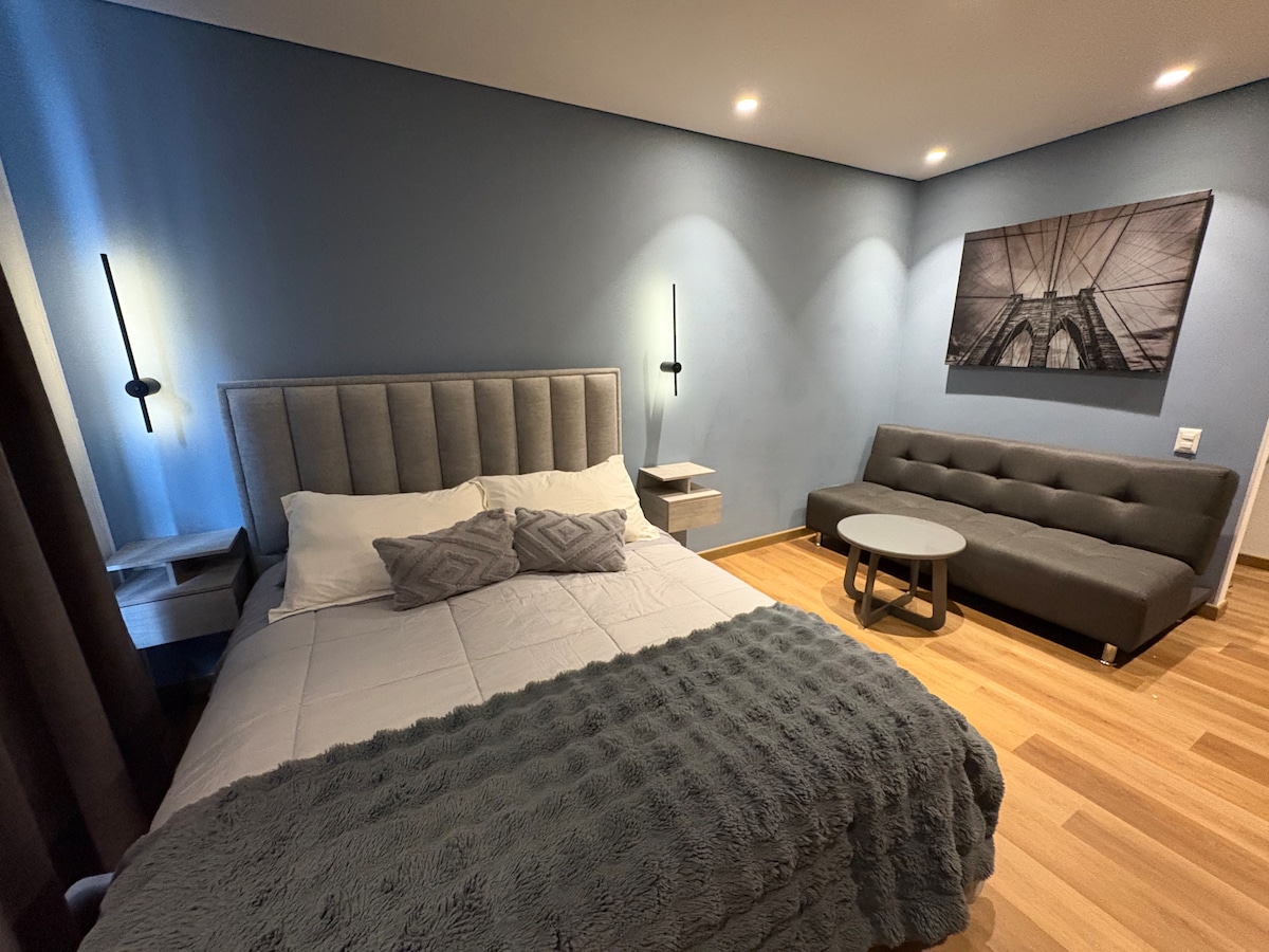 🏙 Enjoy a unique stay in this modern, cozy luxury loft in one of the city's most exclusive zones 🛏 Amenities: – Comfortable double bed – High-speed WiFi 📶 – Smart TV with apps 🍳 Equipped kitchen: – Microwave – Coffee maker – Fridge & freezer – Toaster 💼 Ideal for work: – Large desk – Natural light ☀️ – Coworking area 🛎 Extras: – 24h security personnel – Laundry room available – Great access to public transportation Exclusive area Near restaurants, public transportation & fancy malls
