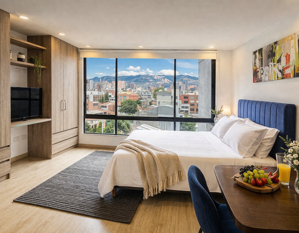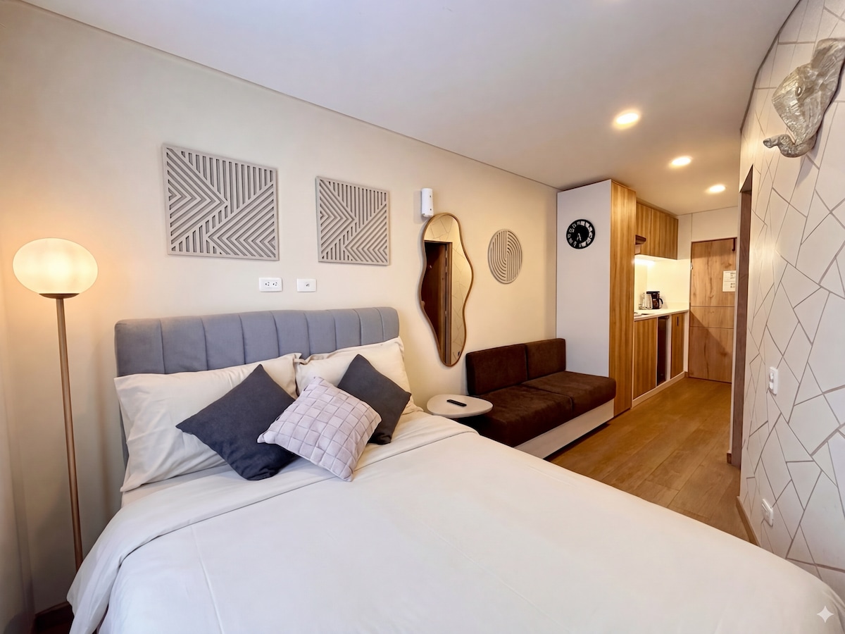 Brand new luxury designer studio in Bella Suiza with private 20m² terrace, 2 bathrooms, smart home system, and Swiss fiber gel duvets. Enjoy premium Olfa toiletries, Nespresso capsules, dishwasher & US-imported laundry pods. Secure building with 24/7 concierge. Smoking (cigarettes only) allowed on terrace. Walk to cafes, Carulla, and Usaquén. Private parking included.
