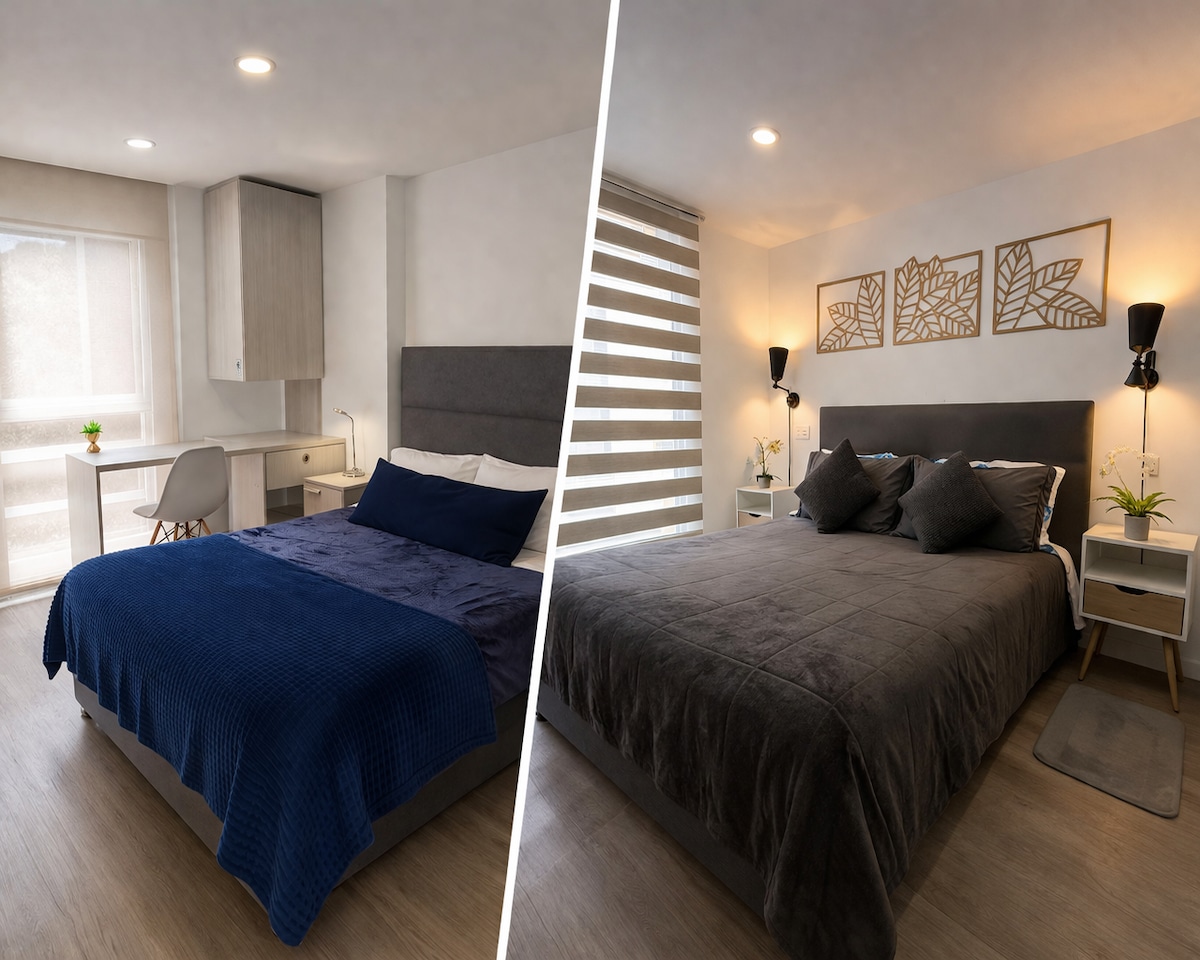 Relax in this modern and comfortable loft located in the charming Usaquén, one of the most vibrant areas of Bogotá. Within a few minutes walk, you will find a variety of gourmet restaurants, cafes, and unique boutiques. The room features a queen bed, private bathroom, Wi-Fi, and a workspace ideal for business travelers. Perfect for couples or solo travelers who want to explore authentic Bogotá life in a safe and sophisticated environment. Uroom is exquisite in the details!