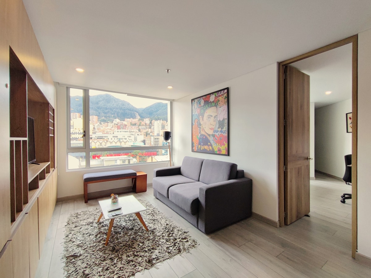 Live Bogota in this Luxury, new hotel-style ! This 2 Bedroom+ 2 Bathrooms+1 sofaBed+ private Jacuzzi Spa with 65” tv in the spa + epson laser projector CINEMA! centrally located in the prime area Chico , short walk from restaurants and shops. Located within 1 mile to park 93, this 5*Hotel-Style Suite brings you to live Bogota the right way, work or play, decoration a unique design luxury apartment, great vibe with a 190sqft private terrace! Just for you! Fiber Wi-Fi and 1 parking are included.