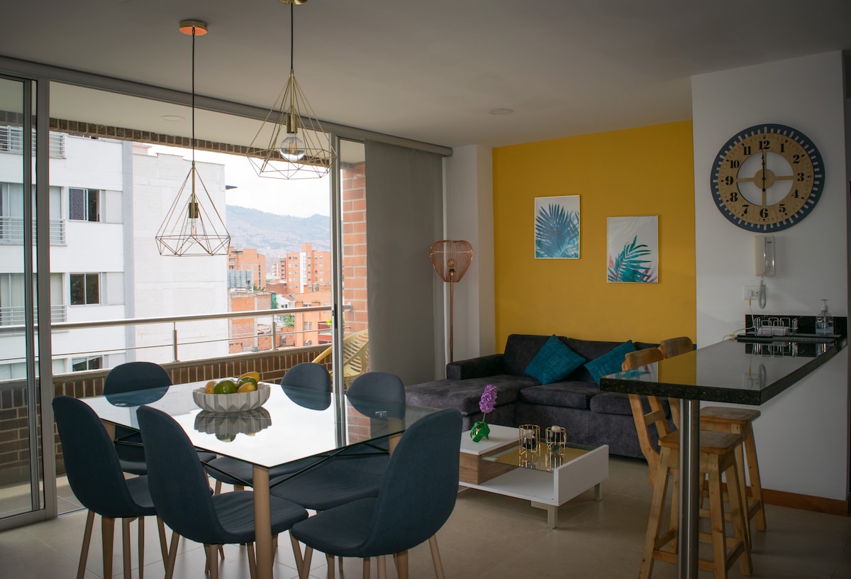 Wonderful and full of yellow apartment in the heart of Laureles area in Medellín. This fantastic apartment has all it takes to have a fantastic experience. 2 bedrooms and a very spacious living room, combined with a fresh balcony will allow you to enjoy yor stay at full. Ideal to work form home with high speed internet of up to 600 mb and workspace designed for your comfort. You will be around the best restaurants, cafes and supermarkets in the city. Also find us as Move Apartments Medellín.