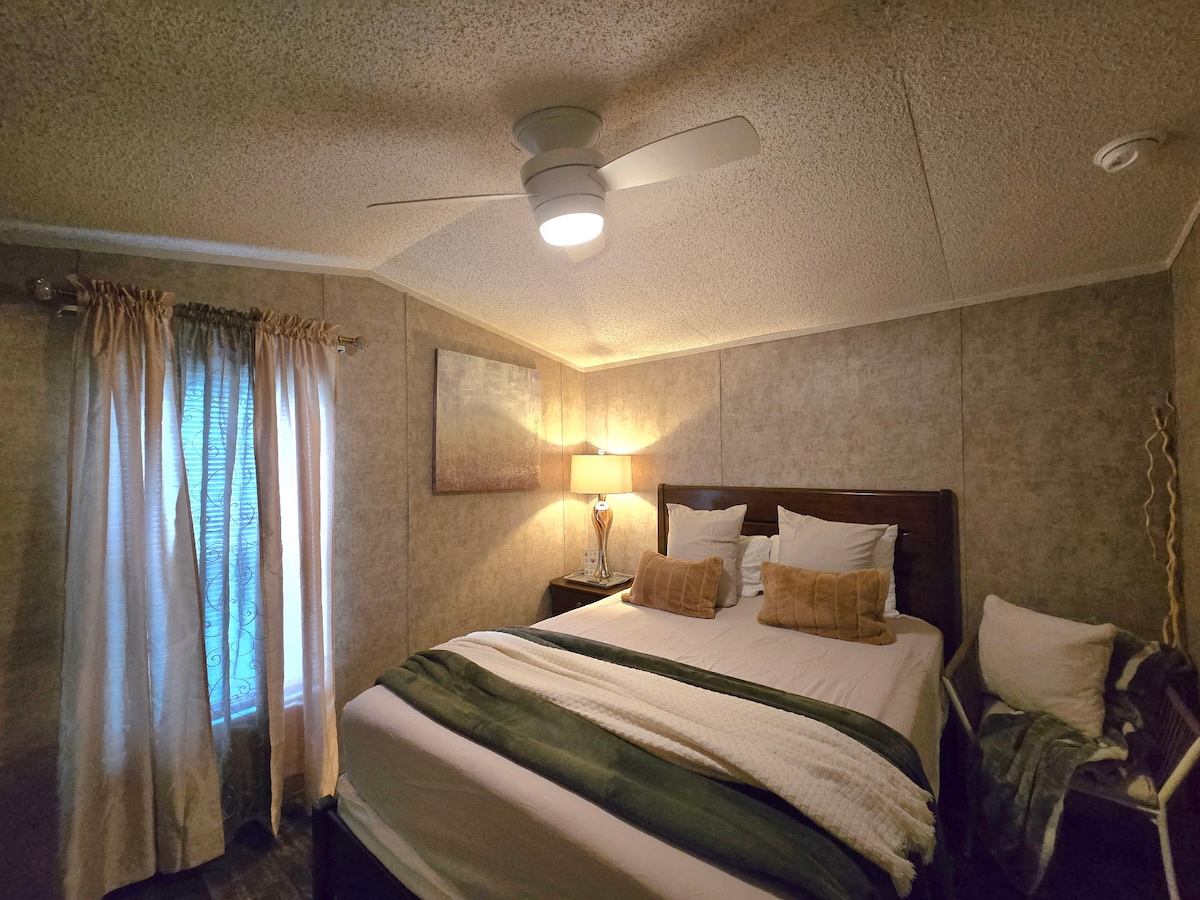 Welcome to the Harris Hideaway! Privately tucked away in the sky-high trees of an Atlanta suburb. You’ll find this perfectly-polished tiny house just 5 miles from Hartsfield Jackson Airport and minutes from the Mercedes Benz Stadium. You'll admire the 360° treetop view through your oversized windows. Also enjoy fresh sheets on your full-size bed and black-out zebra blinds for ultimate privacy. Large shower, kitchenette, comfy bed - this tiny house has it all. Enjoy your stay at our hideaway.