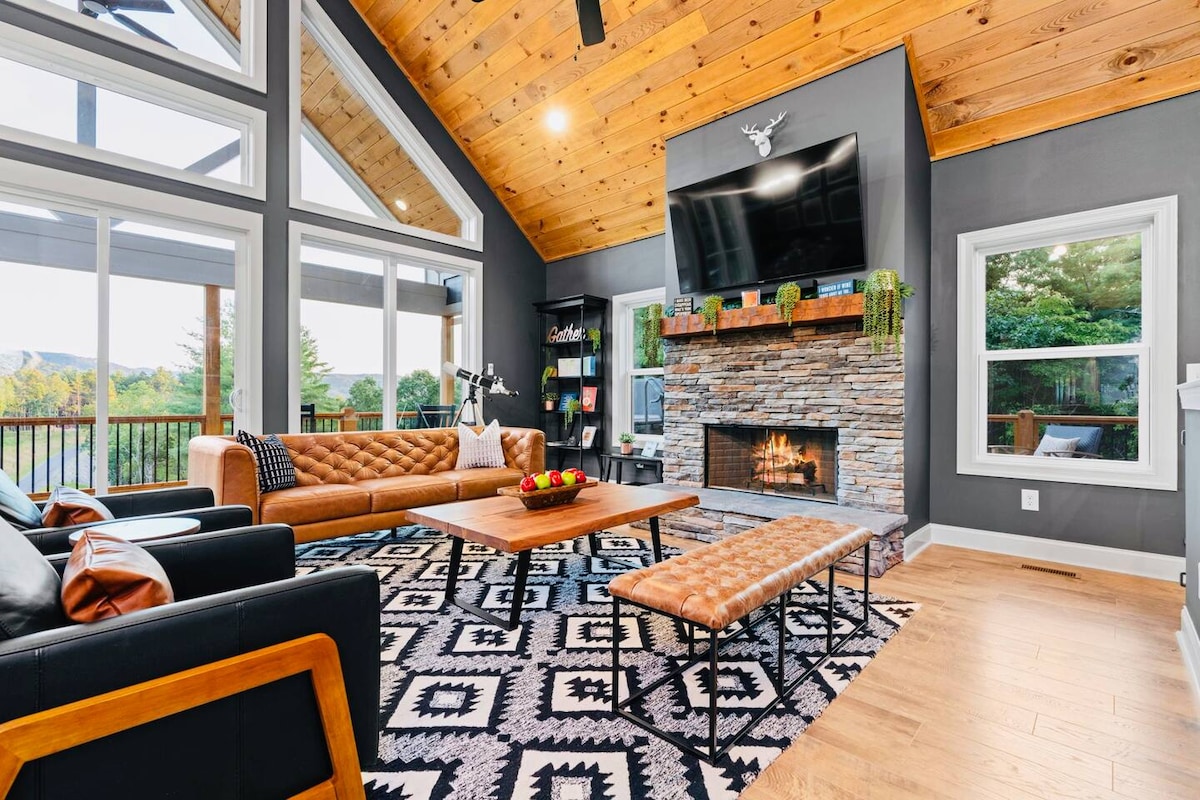 Stargazer✨ is a modern Scandinavian inspired A-frame perched on the mountaintop w/ inspiring views, a bubbly hot tub and only minutes to wineries, Blue Ridge Lake + all of downtown's festivities. ♥️ Please save our A-Frame by clicking the ♥️ on the top right - this will help you find it later and make it easy to share with others! 📽 Smart TVs ✨ Dimmable mood lighting🕹 Chess, Connect4, Jenga, Cornhole + more🧂 Stocked Kitchen☕️ Loaded Coffee Station📡 High Speed Wi-Fi🔑 Contactless Check-i
