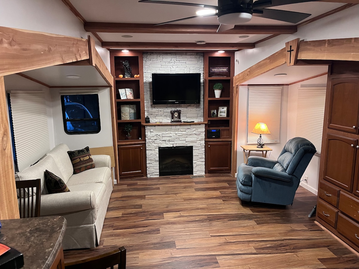 Stunning, well kept, tiny home Enjoy the outdoor entertaining seating on the huge front porch with 6+ seating & extra seating equipped with a large fire pit. Located in Gated Mountain Lakes Resort with multiple pools, waterslide, playgrounds, miniature golf, clubhouse, fitness room, sauna & steam room & a 50 acre Lake to enjoy fishing, kayaking, canoeing, and a beach for swimming & a beautiful waterfall. Golf Cart community with lots of planned activities. Come see the beauty for yourself!