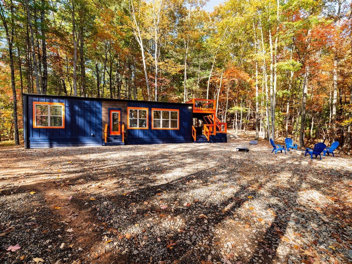 Come to the beautiful mountains of north Georgia for a unique stay in a grain silo turned into an upscale tiny home. Nestled into a private lot you can enjoy a quiet cozy getaway in the evenings after a day of shopping or outdoor activities at the many nearby attractions. Are you hungry? You can cook on the grill outside by the firepit or make a full meal in the kitchen. The living room is set up for relaxing with a good book or favorite TV program before settling in for a good nights sleep.