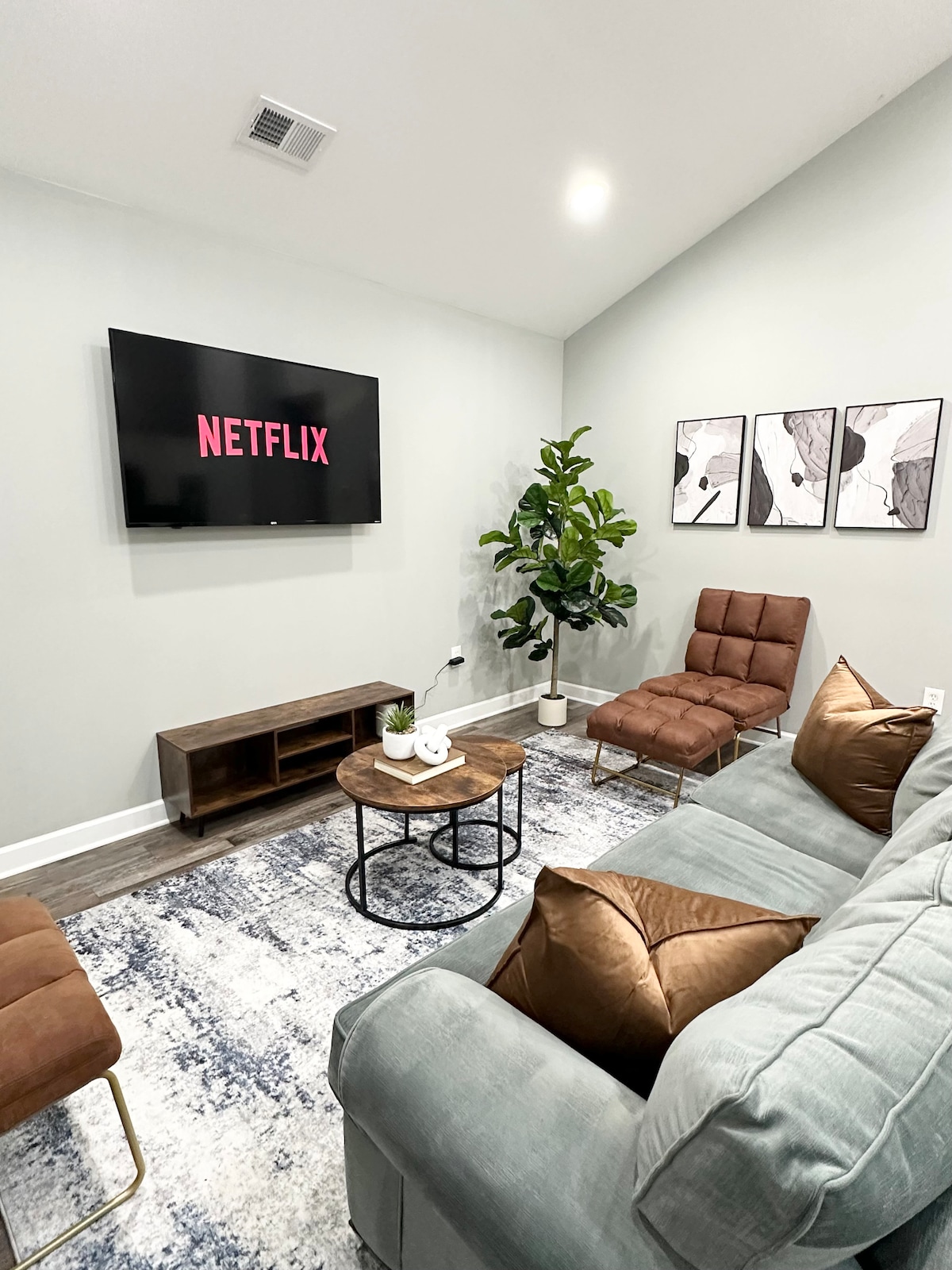 🛏️ 3 Private Ensuite Bedrooms Each bedroom is on its own level for privacy 🚗 Garage + EV Outlet(needs adapter for Tesla) Attached garage with direct access EV charging. ( $10 per day) 🏡 Comfortable Open Living Modern open living and dining for everyday comfort. 🍳 Fully Equipped Kitchen Ready for home cooking and long stays. 💻 Work-Friendly Setup Fast Wi-Fi, smart TV, and workspace. 🌿 Quiet, Safe Location Free parking, near Uptown and steps to Charlotte Swim & Racquet Club.